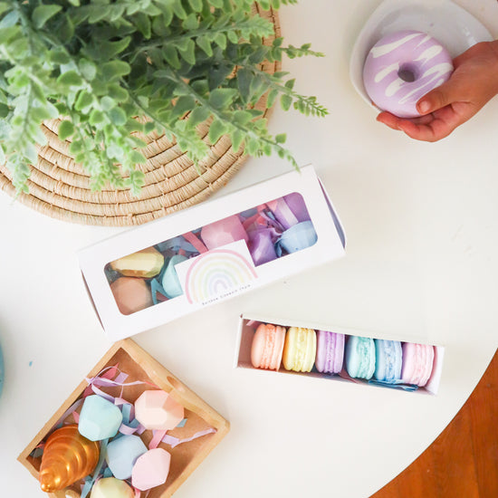 Crafted in small batches with non-toxic, eco-friendly ingredients, our chalk isn’t just about colour—it’s about sparking creativity. From giant rainbows, cute butterflies and playful dinosaurs to sweet doughnuts, macarons, ice cream cones, and rocket ships, our whimsical designs are made to ignite the imagination of young creators.